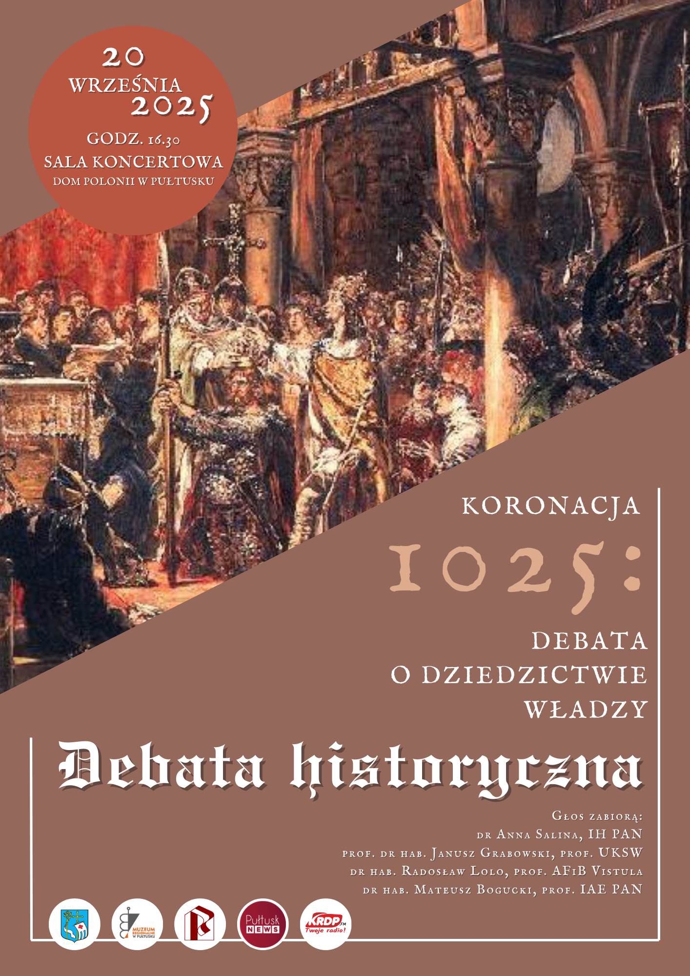 Debata „Koronacja 1025: Debata o dziedzictwie władzy” to wydarzenie, które łączy refleksję naukową z troską o lokalne dziedzictwo oraz przyszłość młodego pokolenia. W roku 2025, w tysiąclecie koronacji Bolesława Chrobrego, spotkają się w Pułtusku wybitni historycy i badacze, aby podjąć rozmowę o znaczeniu tego aktu w kontekście dziejów Polski, Mazowsza i Europy.